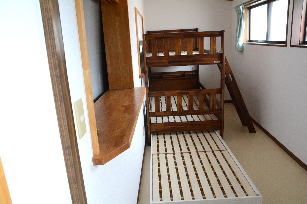・エアコン、冷蔵庫、二段ベット、三名宿泊可能、4.75u